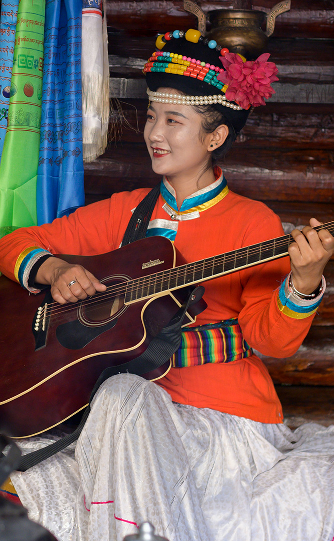摩梭人是納西族的一個(gè)支系,多聚居在寧蒗縣永寧鄉(xiāng)的瀘沽湖畔,人口約8萬。摩梭民居就地取材,用圓木橫壘為墻,建成合院式寨樓居住,這類井干式建筑又稱木楞房,具有較好的御寒保溫性能,體現(xiàn)了順應(yīng)自然的生態(tài)觀。摩梭人保留了母系大家庭的基本形態(tài),呈現(xiàn)在您眼前的是一個(gè)完整的摩梭家庭的四合院,由正房、經(jīng)堂、花樓、門樓等構(gòu)成,正房坐北朝南,通稱祖母房。居住一家中最年長(zhǎng)的女性,同時(shí)也是一大家人飲食、待客、議事的核心場(chǎng)所...
